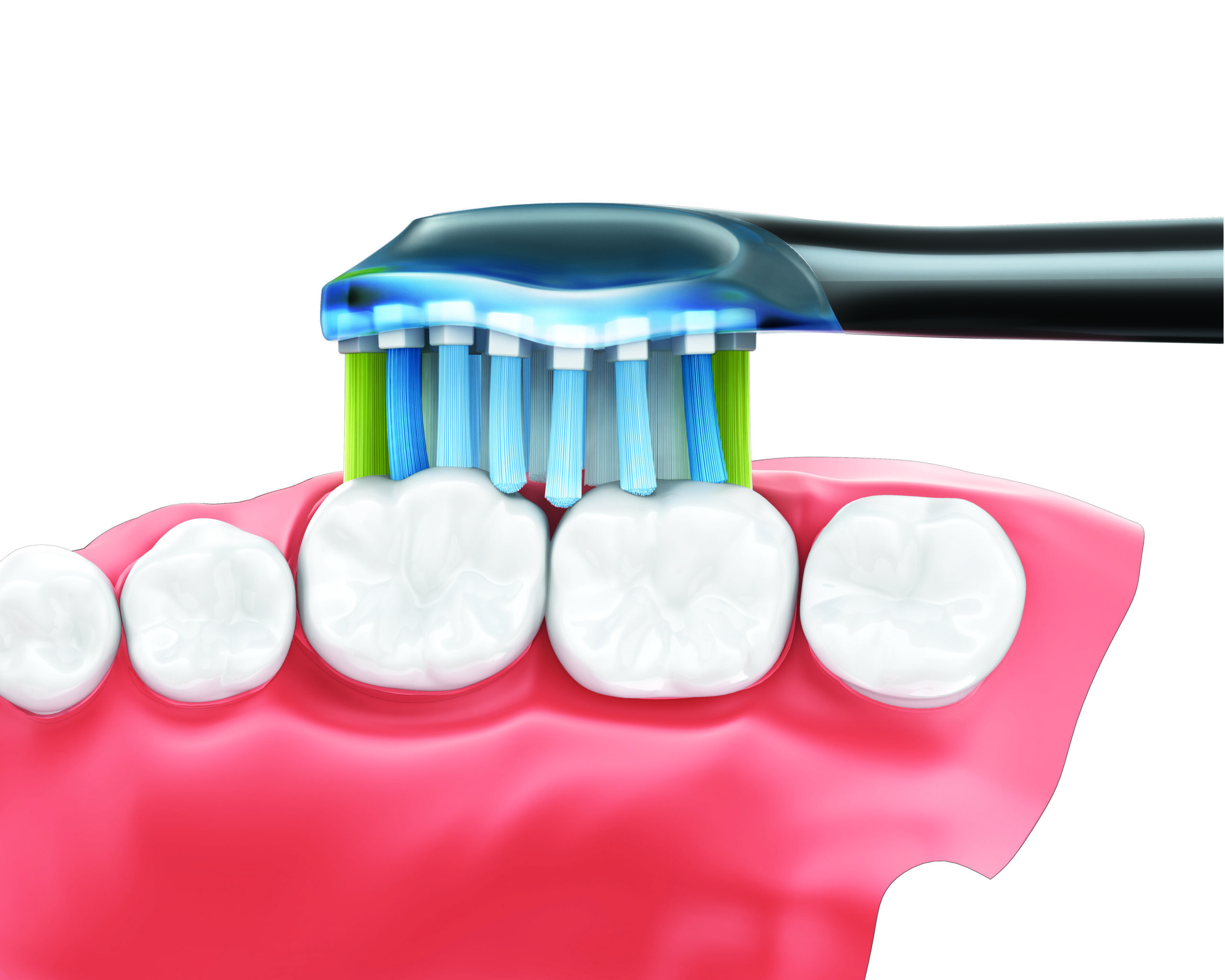 You get a personalized clean every time you brush with our adaptive cleaning technology. Soft rubber sides flex to let C3 Premium Plaque Defense adapt to the shape of your teeth and gums, absorbing any excess brushing pressure and enhancing our sonic cleaning power. Bristles can then adjust to the shape of your teeth and gums so you get up to 4x more surface contact than a regular brush head for deeper cleaning in hard-to-reach areas.